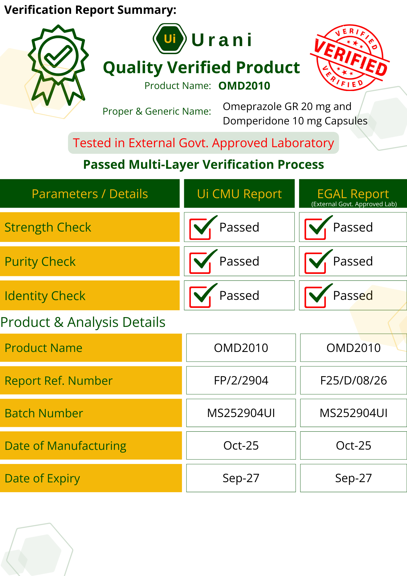 OMD2010 - Omeprazole GR 20 mg + Domperidone 10 mg Capsules