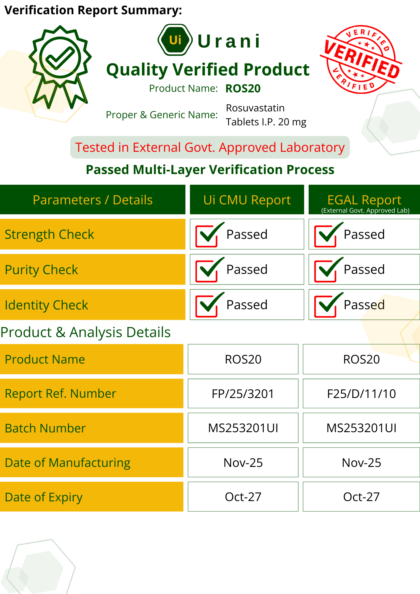 Product Code: Rosuvastatin Tablets IP 20 mg