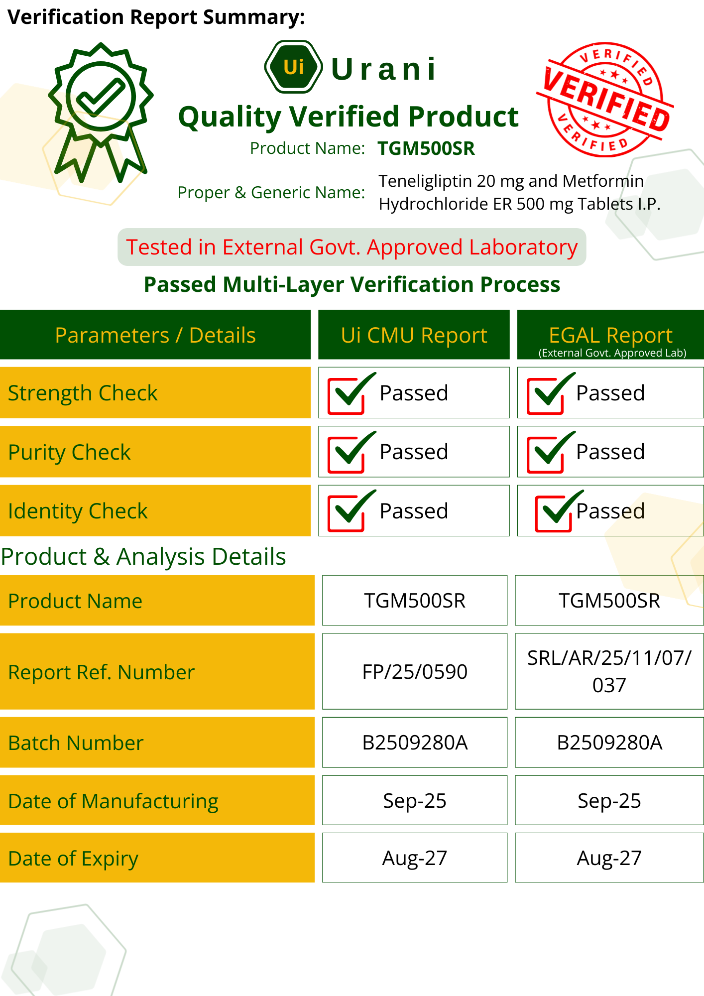 TGM500SR - Teneligliptin 20 mg + Metformin Hydrochloride ER 500 mg