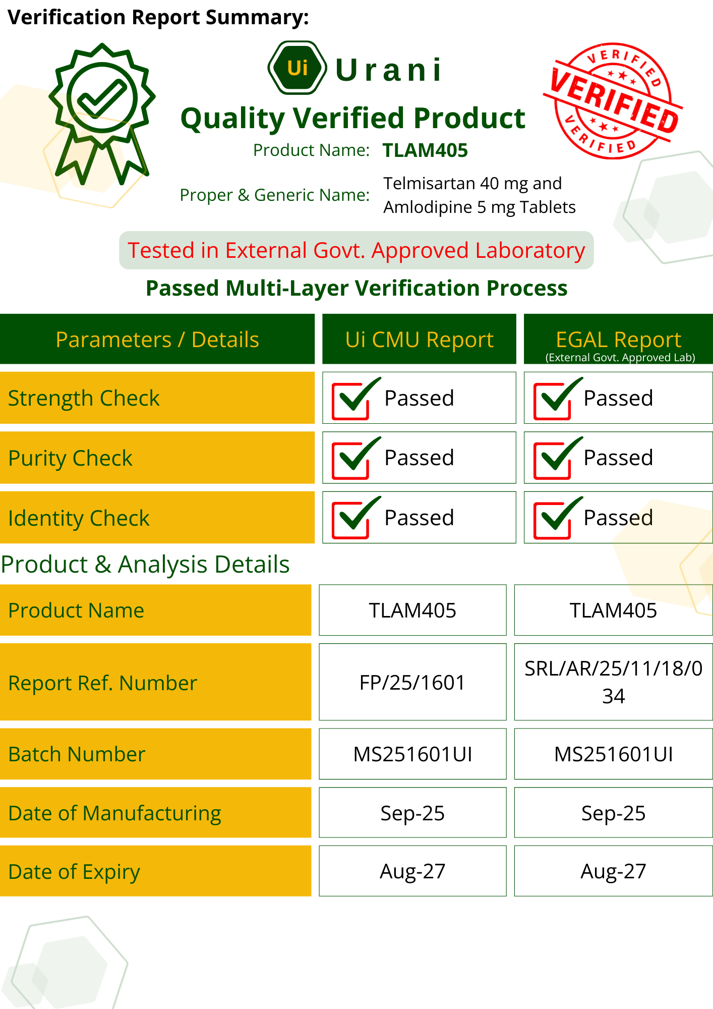TLAM405 - Telmisartan 40 mg + Amlodipine 5 mg Tablets