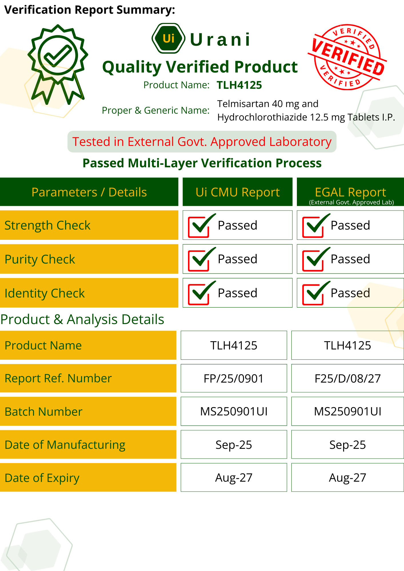 TLH4125 - Telmisartan 40 mg + Hydrochlorothiazide 12.5 mg Tablets